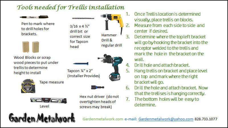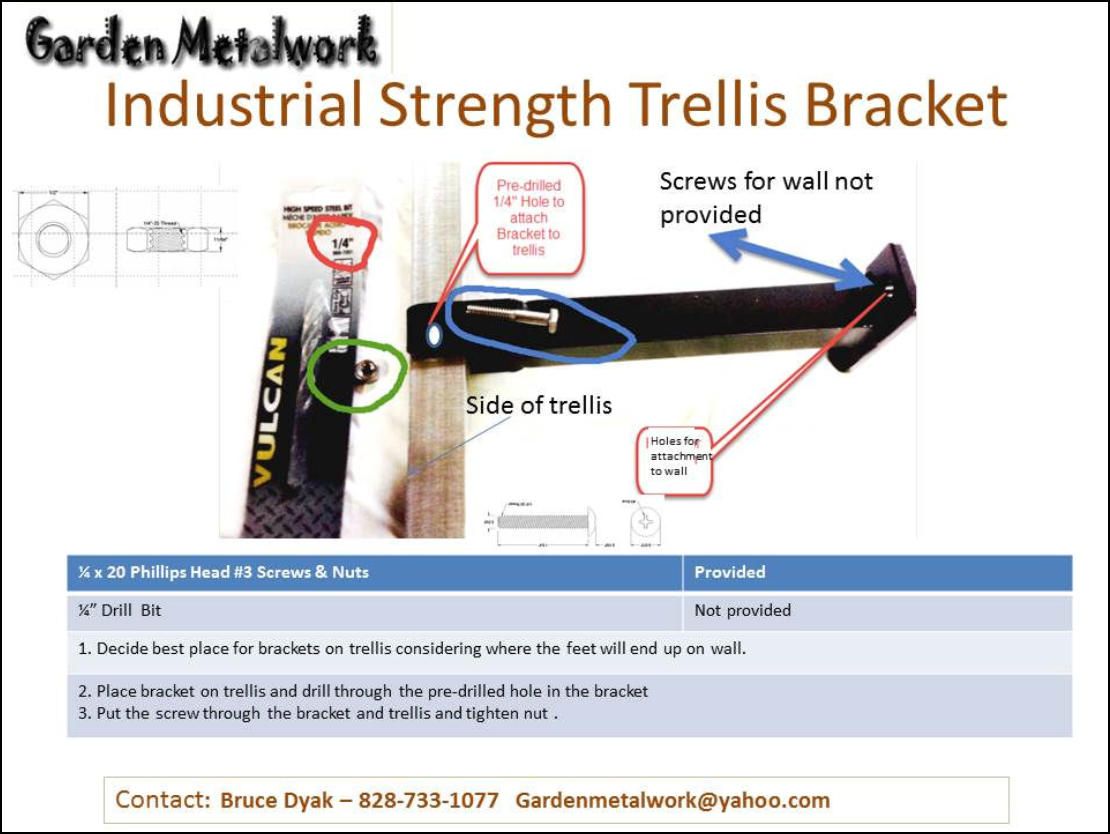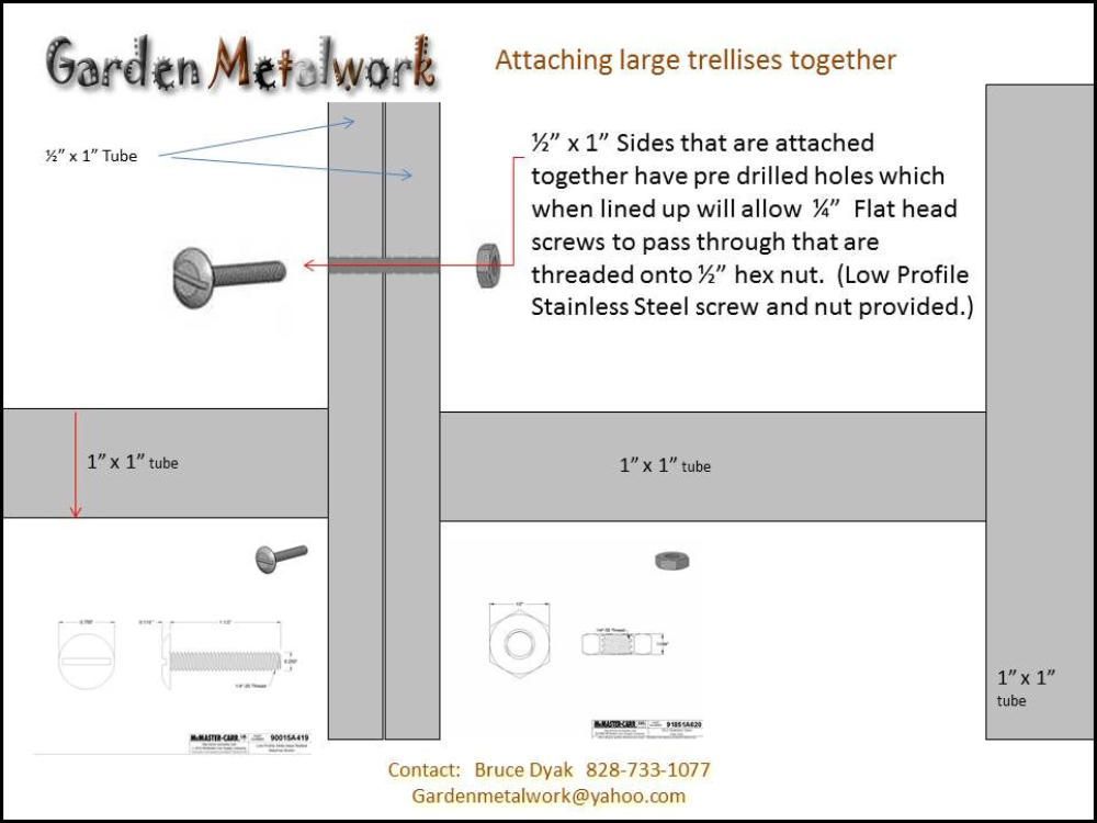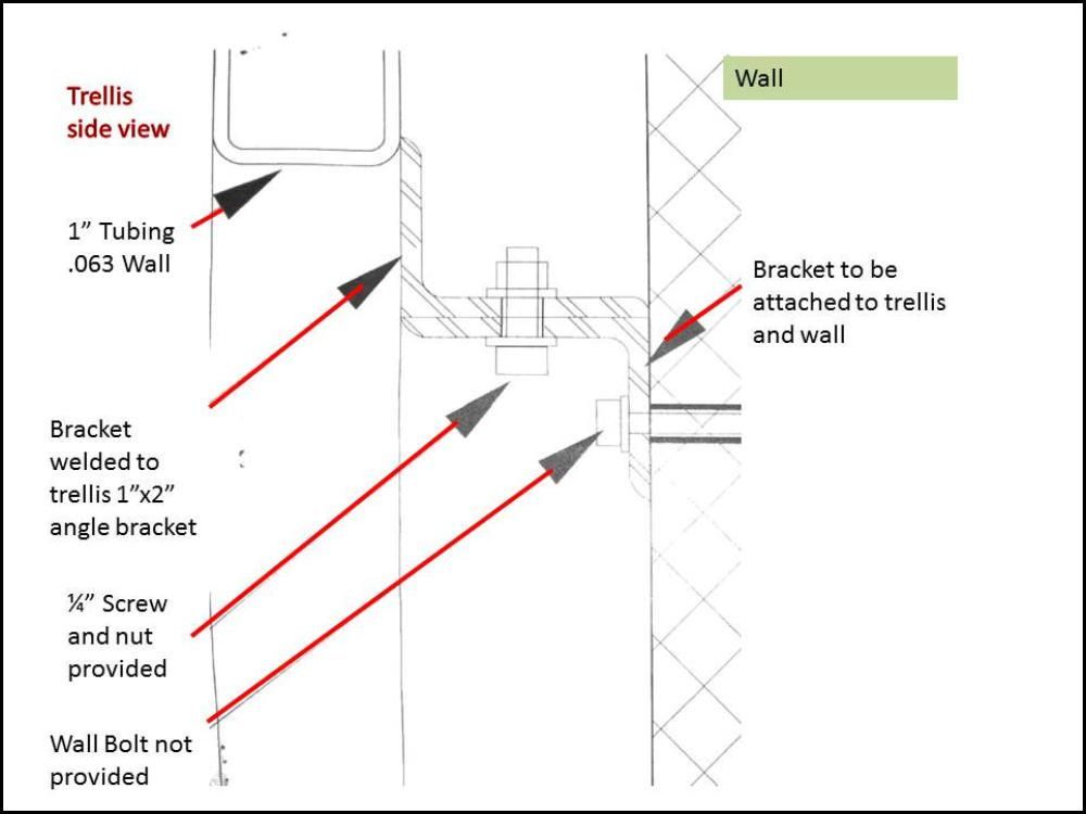 - A 1/2 " x 1" bracket holder is welded to the back of the trellis wherever an attachment point is needed. This looks like