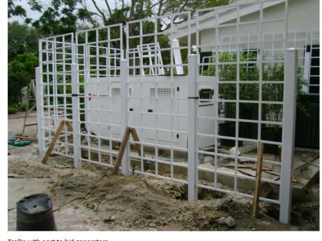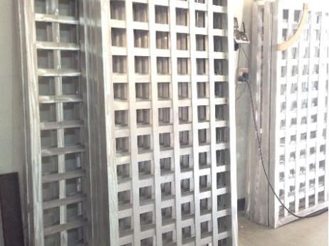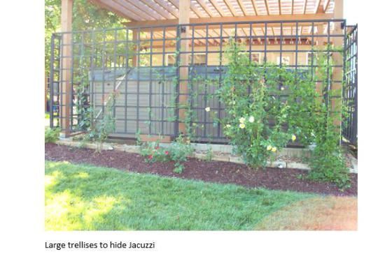 - Much less expensive to have us produce a low maintenance long-lasting, quality trellis made to specifications, any size and various size material…most are made of 1†square Aluminum tubing, powder coated, packed and shipped to the jobsite.